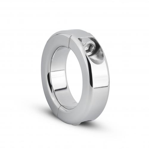 Deze stoere metalen cockring laat de mannelijke vormen uitdagend naar voren komen. De ring zorgt ervoor dat het bloed dat naar boven stroomt in de penis, niet meer kan zakken. Hierdoor zal de erectie langer aanhouden en zijn de geslachtsdelen voller. De metalen sextoy zal daarnaast zwaarder aanvoelen dan de standaard (siliconen of rubberen) cockringen. Dit zorgt voor een trekkende, drukkende sensatie. Ook is de penisring voorzien van een slot. Het slot is alleen te openingen met de bijgeleverde inbussleutel.